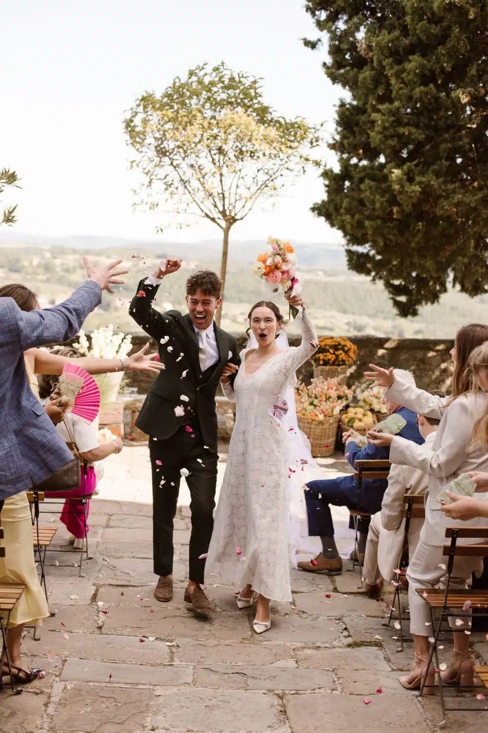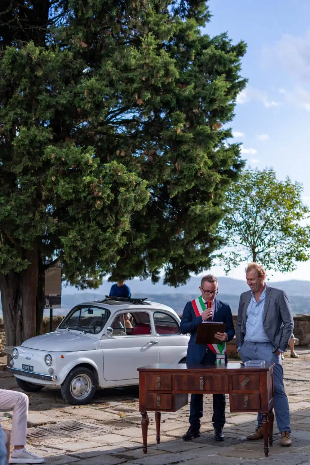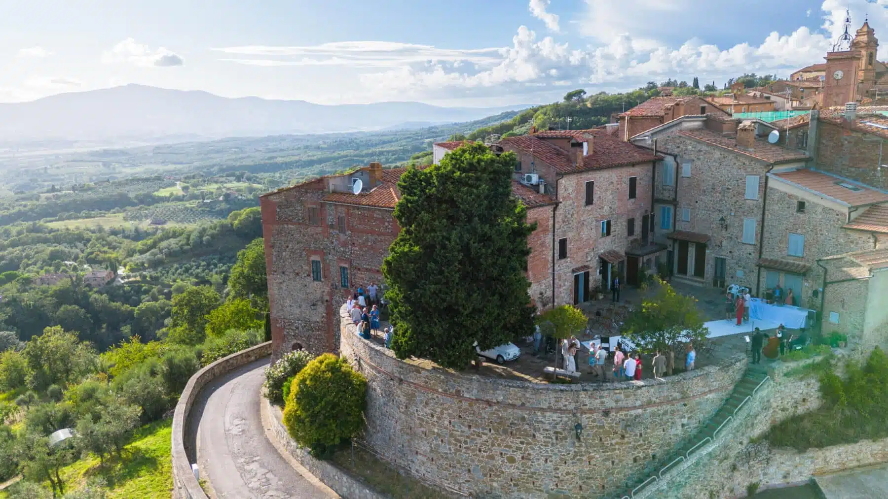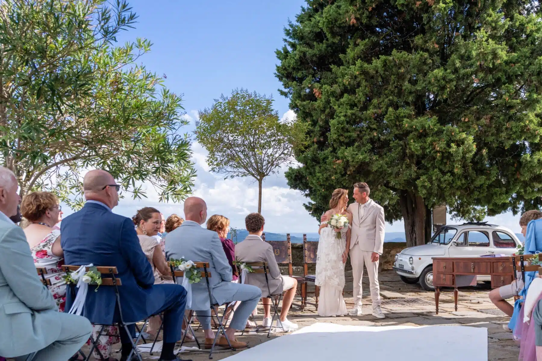Wil je graag officieel voor de wet trouwen of ceremonieel trouwen? Als je jouw bruiloft bij Casa San Carlo wilt vieren kan het allebei. De ceremonie kan plaatsvinden op het lieflijke uitkijkpleintje in het dorp, romantisch in de open lucht, prachtig versierd, en met een adembenemend uitzicht over de gehele vallei. Na het ja-woord is er feestelijke live muziek en sprankelende prosecco voor iedereen, en kan iedereen het stralende bruidspaar feliciteren!